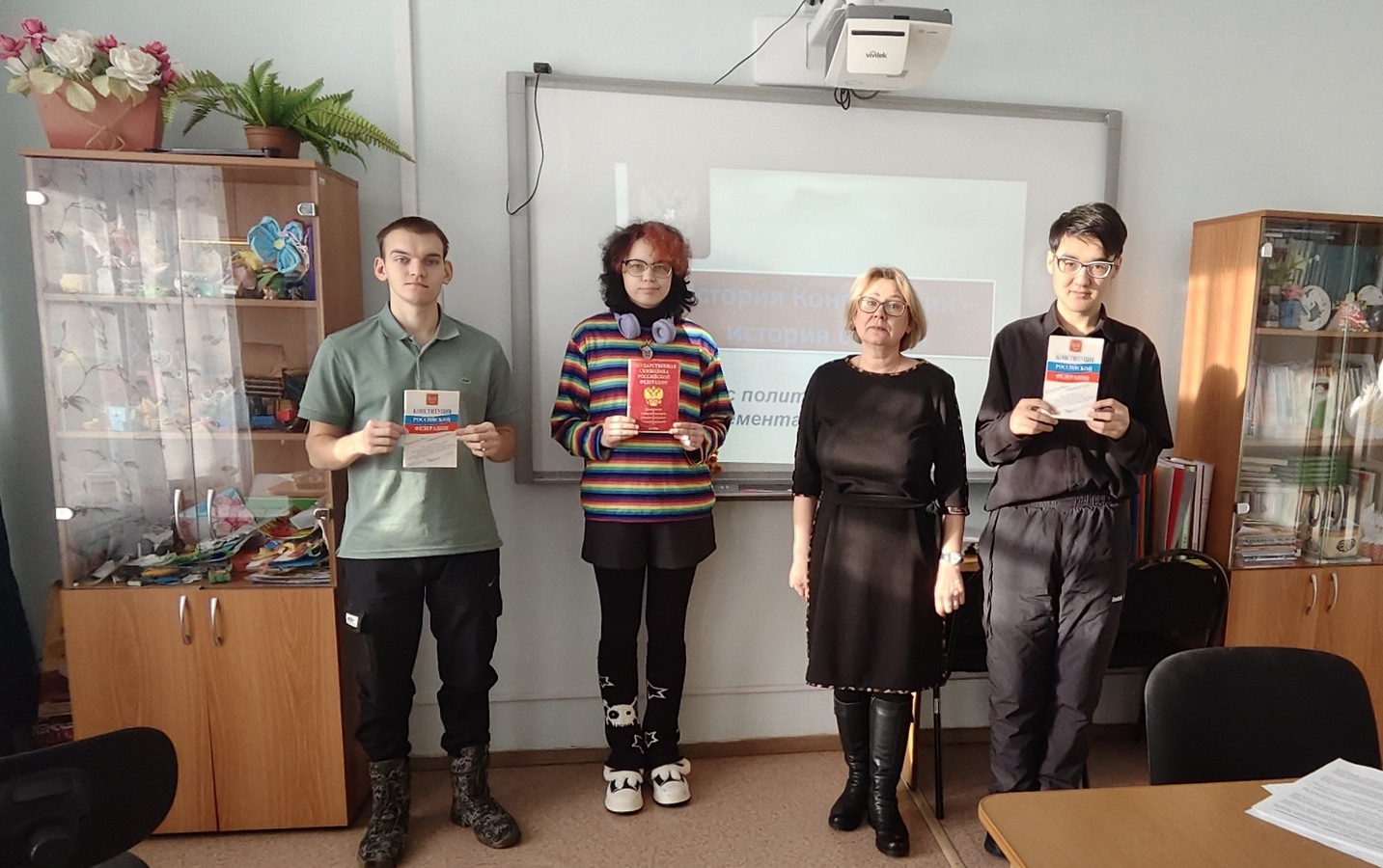 С использованием мультимедийного оборудования была показана презентация об истории создания Конституции РФ, принятой всенародным голосованием 12 декабря 1993 года. Ребята узнали о том, как менялся главный документ страны, какие основные принципы легли в его основу, и почему так важно знать и соблюдать свои права и обязанности.