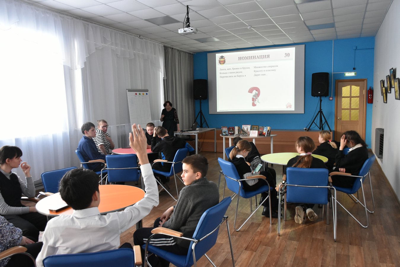 Затем школьники разбились на три команды и началась интерактивная электронная игра «К службе в Армии готов!». Ребятам предложили четыре категории вопросов: «военные профессии»; «военная техника»; «виды спорта»; «спортивное снаряжение». Играли весело, азартно, легко. В завершении игры прослушали патриотическую песню «От героев былых времён» из кинофильма «Офицеры».