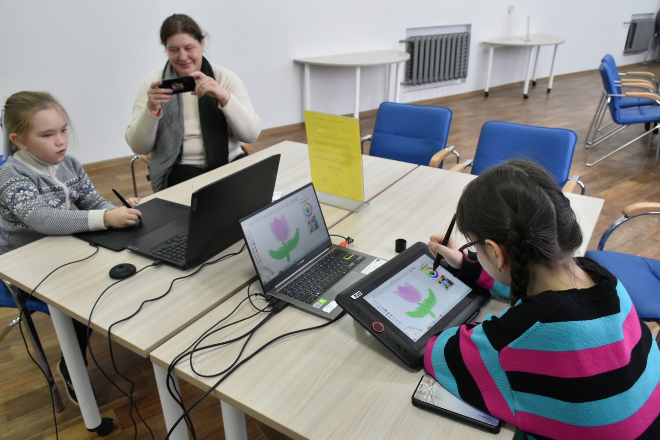 В мастер-классе «Приключение цвета: создаем абстрактные миры» пользователи делали первые шаги в компьютерном дизайне – учились работать с графическим планшетом. Для малышей также были организованы мастер-классы: «Радуга в банке» - создание из цветного песка «насыпушки» в стеклянных пузырьках, «Волшебная палитра» - рисование с помощью подручных инструментов: питьевых трубочек и п/э пакетов. Ребятишки с удовольствием приняли участие в творчестве.