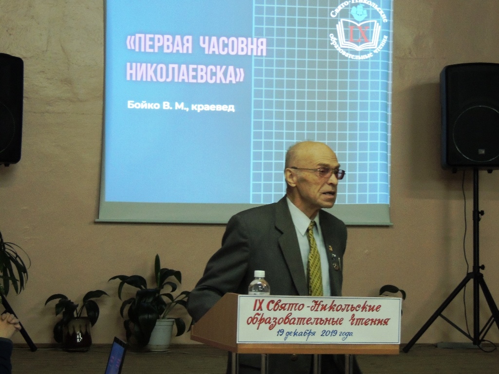 С сообщением «Первая часовня Николаевска» к 165-летию со дня открытия в 1854 году выступил краевед Бойко Виктор Моисеевич.