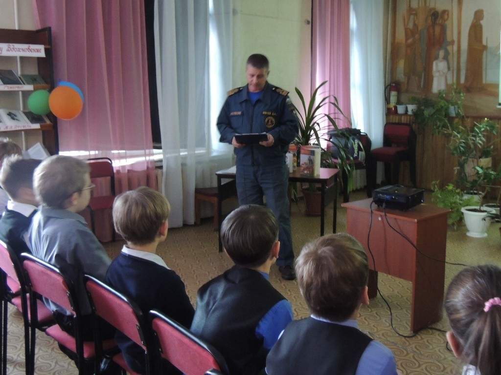 Скоро придет весна, а с ней - ледоход, а это еще одна опасность для любопытной и озорной ребятни. Поэтому продолжил занятие государственный инспектор ГИМС Д.А. Ивлев с профилактической беседой о безопасности на водных объектах в весенний период. Форменная одежда и серьезность разговора заставили школьников притихнуть, зато потом посыпались вопросы, на которые инспектор очень четко и ясно давал ответы.