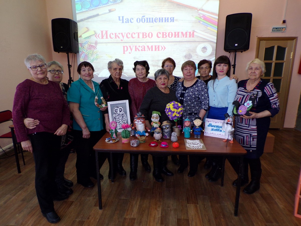 К мероприятию была оформлена выставка-хобби, на которой были представлены различные поделки ручной работы: вышивка, вязание, папье-маше, картины и т. д. Своими руками «хозяюшки» сделали прекрасные работы, которые презентовали в ходе встречи. Рассказали о том, как они начинали заниматься рукоделием, как им было сложно вначале, а потом со временем пришло мастерство и творческое вдохновение. Участники клуба обмениваются техниками прикладного искусства, осваивают новые приемы и организуют выставки своих работ в Районном доме культуре. Замечательные сувениры, картины и поделки создают уют в их квартирах, а также радуют близких и друзей. Особенно рады их подаркам внуки.