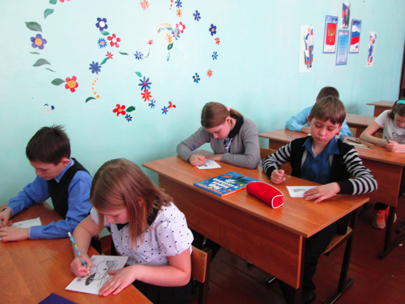 Далее, ребята, увлечённо рисовали китов и других морских обитателей. В конце мероприятия Раиса Васильевна познакомила ребят с книгами о китах, представленными на книжной выставке. Хочется отметить, что в нашей стране обитают многочисленные виды китов, дельфинов, морских котиков и тюленей. Многие из них находятся под угрозой исчезновения и занесены в Красную книгу Российской Федерации и Международного союза охраны природы.