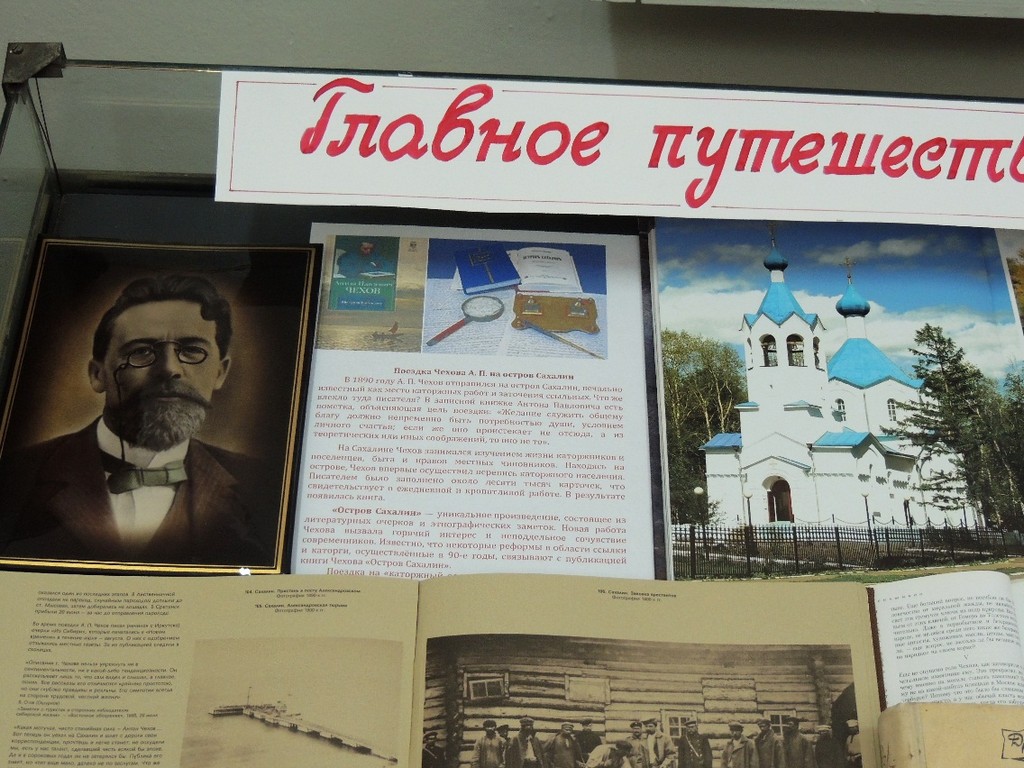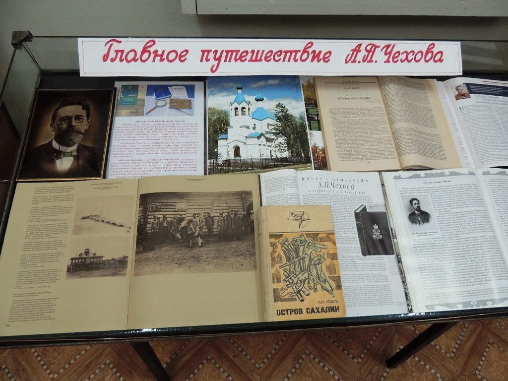 Для жителей нашего города сотрудники библиотеки организовали книжную выставку «Главное путешествие А.П. Чехова» на которой представлены книги и материалы, рассказывающие о путешествии Антона Павловича и его книге «Остров Сахалин».