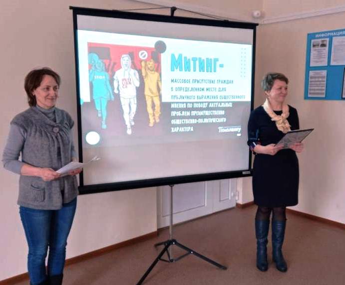 Задачами библиотекарей было сформировать представление об опасности участия в несанкционированных митингах, а также воспитать чувство ответственности, безопасности и самосохранения у молодежи.