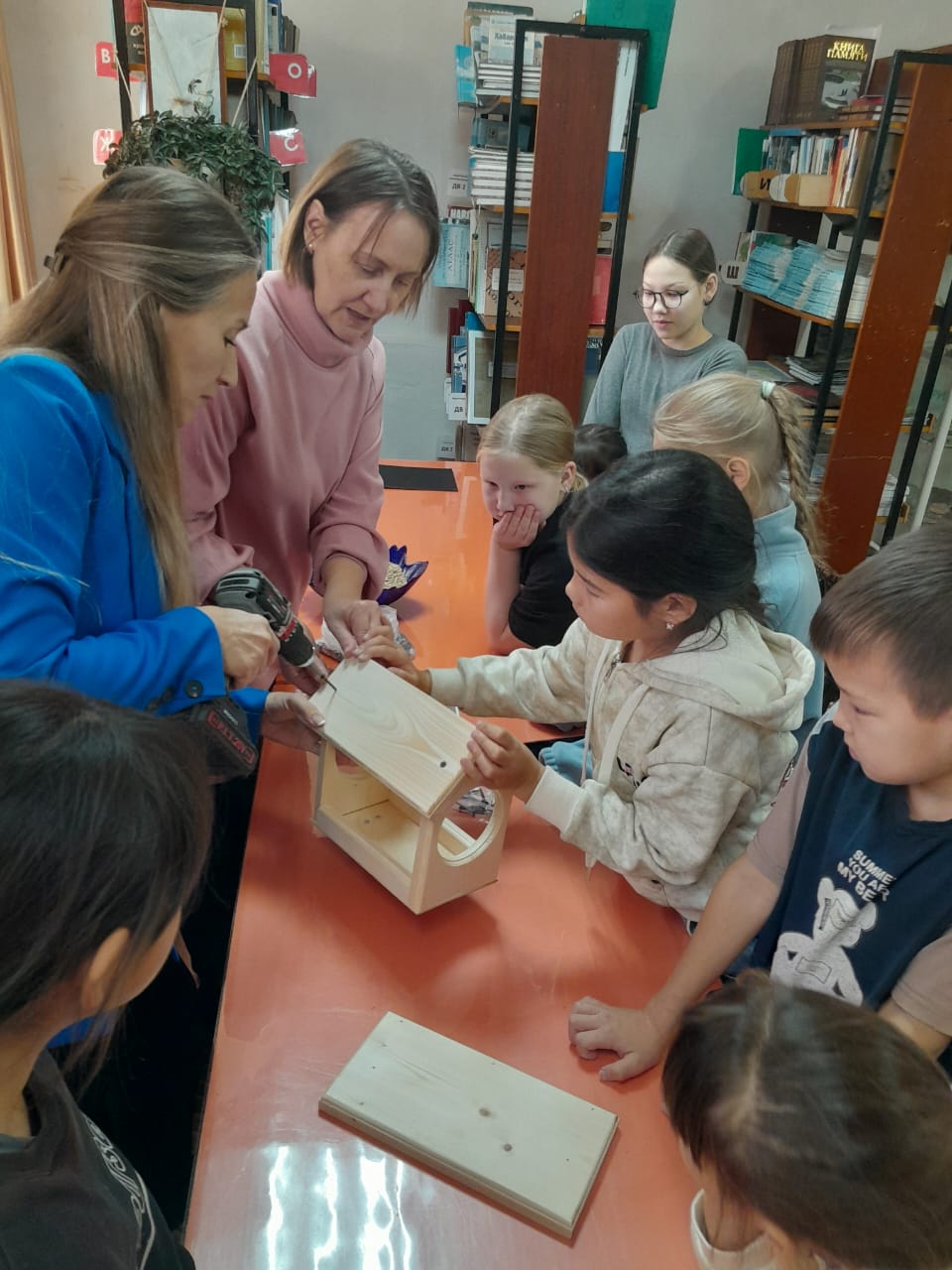 Для поддержки зимующих птиц тут же была изготовлена кормушка и установлена возле здания библиотеки, а дети наполнили ее овсом и семечками. На следующий день поползни, синички, воробьи прилетели к кормушке лакомиться оставленным для них угощением.