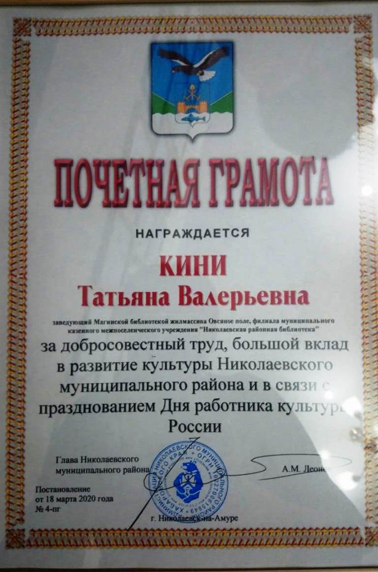 В этот день сотрудники библиотек Николаевского муниципального района Хабаровского края получили грамоты и благодарственные письма.